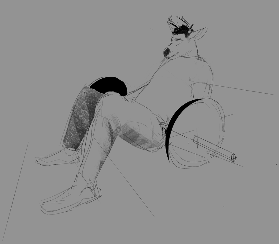 An anthro deer man doing a hip thrust